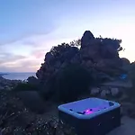 La villa Roccette Ondaturchese, Vista Mare E Jacuzzi Privata Costa Paradiso, situada a 20 minutos a pie de La Sorgente, ofrece a sus huéspedes la posibilidad de relajarse en una bañera de hidromasaje.